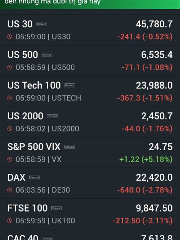 F0 chính Hiệu Cảm ơn tin của bạn mà xem chỉ số tương lai us30 vs us500 ở đâu đó mình xem trên investing vẫn đỏ lòm nhỉ