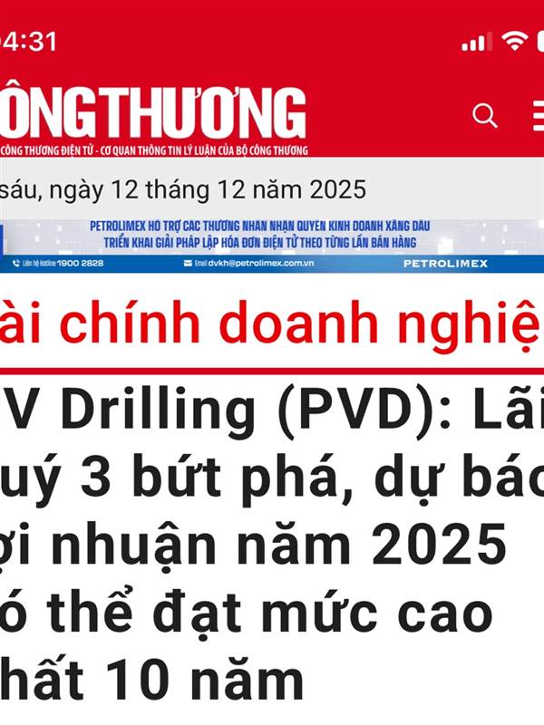 “Bước sang năm 2026, PV Drilling có thể thu về hơn 11.800 tỷ đồng doanh thu và hơn 1.100 tỷ đồng lợi nhuận sau thuế. Nhìn xa hơn, năm 2027...Thêmtapchicongthuong.vn/...-cao-nhat-10-nam-348874.htmtapchicongthuong.vn/...pv-driliing-viii-349055.htm