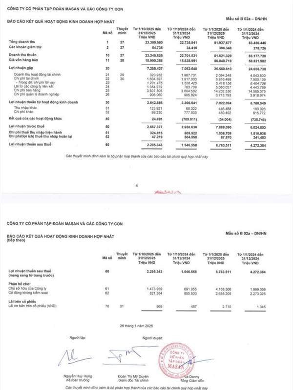 Masan LNST Q4 2.3k tỉ, + 148% yoy