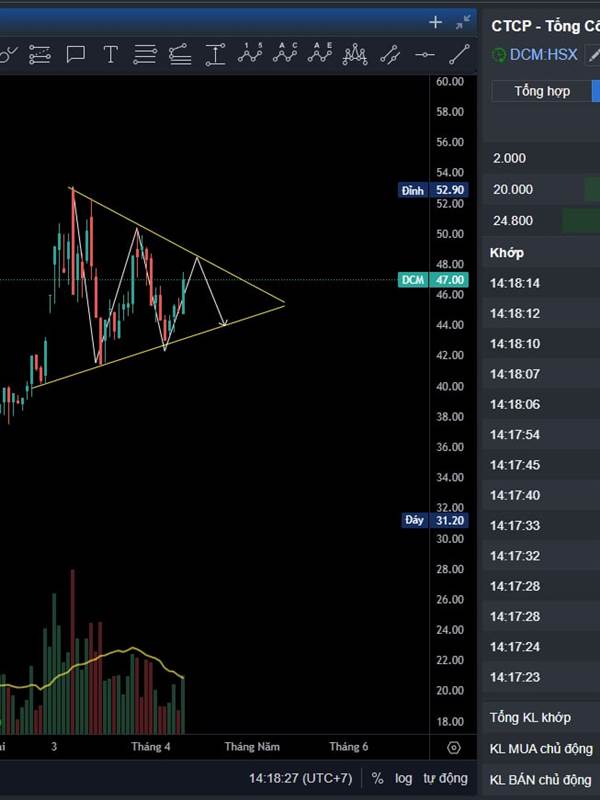 DCM e nghĩ đang đi trong mô hình tam giác, chờ nó phá bên nào thì theo bên đó, cũng chưa chắc phân phối hay tích lũy để lên tiếp đâu bác