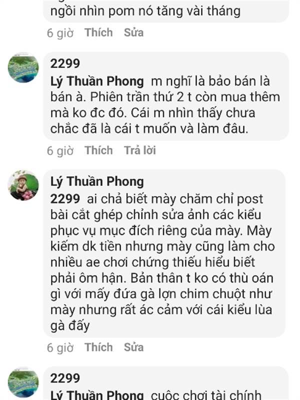 2299 Rồi xả như thế này hả. Hay là toàn nhỏ lẻ vì đồng tiền mà nghĩ cách hại nhau như mày