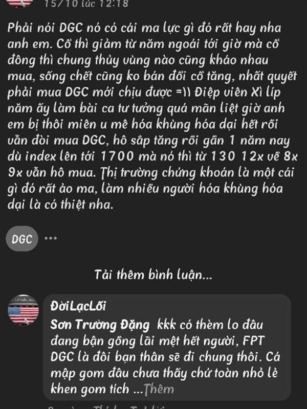 Mời con bạc đọc báo cáo của DGC, và ngừng thắc mắc vì sao người khác mua mã downtrend cụ thể là DGC, mã DGC tuy trong ngắn hạn vẫn giảm nhưng trong tương lai dài hạng sẽ tăng trưởng nhờ những siêu dự ...Thêm
