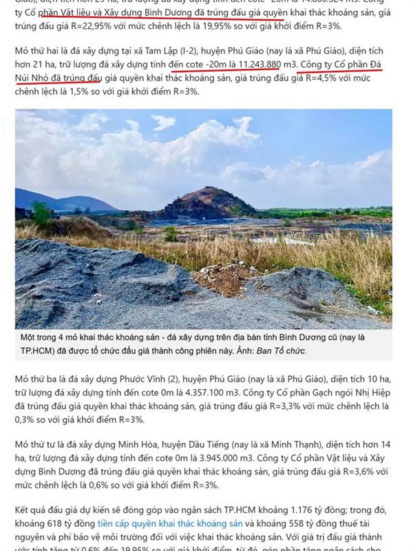 NNC trúng đấu giá 1 mỏ đá, MVC trúng 2 mỏ, NHC 1 mỏ, để tiền đầu tư mỏ mới ko chia