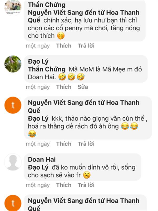 Nguyễn Viết Sang đến từ Hoa Thanh Quế Doan Hai cay cú kể gì trong đó, bày đặt dạy Spartan kêu nó non, ai ngờ Doan Hai nguuu nhất, dị quá nói hươu nói nai tỏ vẻ không quan tâm. Thượng Lưu , Hạ Lưu. Tiền nhiềuu không ai nguuu như Doan Hai đ...Thêm
