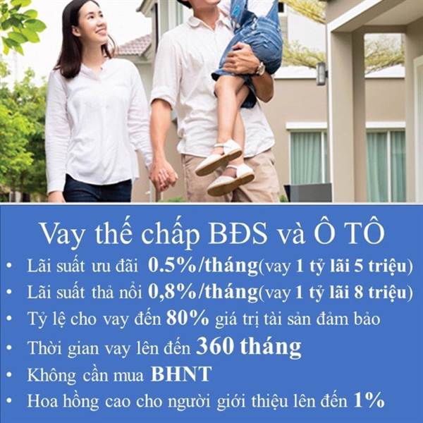 Ls thả nổi 0,8%/tháng ( vay 1 tỷ trả 8 triệu/tháng)