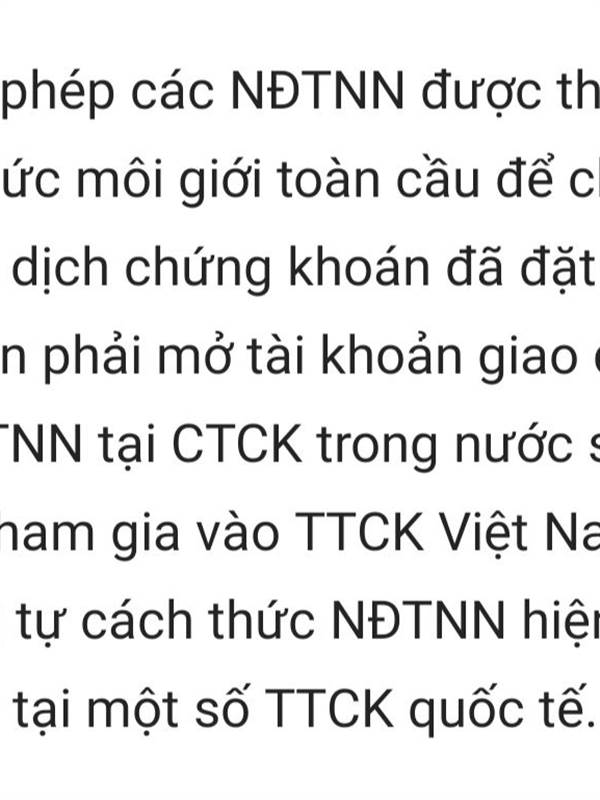 Lạy bố , đọc cũng ko hiểu mà chơi CK, thông qua tổ chức mô giới , tổ chức đó sẽ đại diện mua qua các cty CKVN, chứ mày xem mua CP VN kiểu gi ???