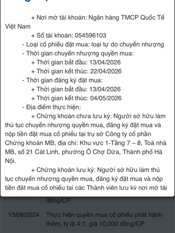 Đăng ký quyền mua trên app ck đó