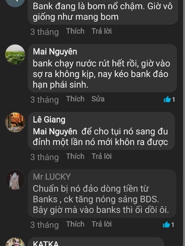 Mai Nguyên mày tưởng có 2 mã bank đấy là nó tăng thôi à. Sao mày cứ lôi mã đu đỉnh nó đi xuống ra nói chuyện nhỉ. Mày đầu tư thì phải biết linh hoạt. Chứ đừng ấn định cái suy nghĩ nó phải tăng.
