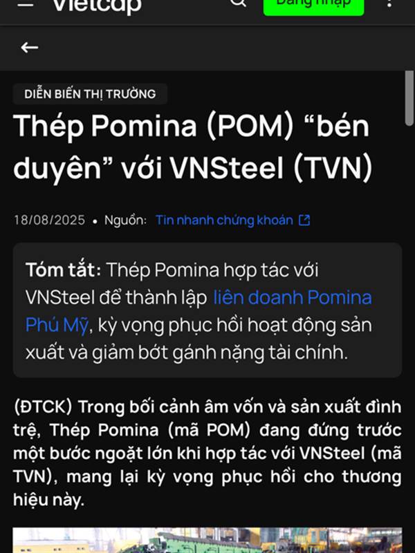 TVN hợp tác POM thành lập liên doanh "Pomina Phú Mỹ". Vinmetal hỗ trợ POM -->> TVN gián tiếp bắt tay Vin. Kakakakaka