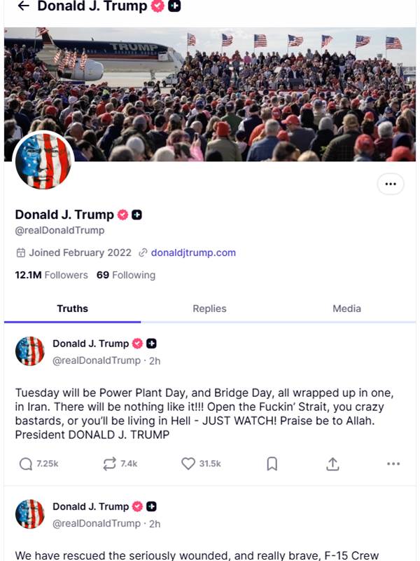 Trên trang MXH truthsocial của ông Trump bạn ạ.