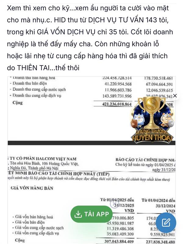 Vua Cổ Phiếu thế không nghĩ là nó chưa tìm đủ chứng từ hợp lệ để hoàn ứng bằng chi phí à, để ý đi nhà máy nước đi vào hoạt động lãi tý ti, làm điện gió chuyển nhượng đình đám cũng lãi tý ty, nao làm khu cn xong bá...Thêm