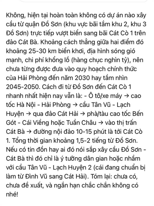 Đi sang đảo cát bà đi qua cầu tân vũ mà. Chim lợn này rẻ tiền thế nhỉ. Search về cầu vượt biển Tân Vũ đi nhé