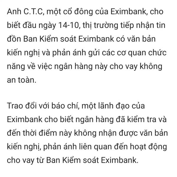 Nguyễn Hợp ông muốn bàn tới chuyện này thì tôi nói luôn, sao ông ko nghĩ đến việc họp cổ đông của EIB xưa giờ có suông sẻ ko !? rồi BKS và HĐQT hiện giờ có nội bộ lủng củng ko !? và nếu báo cáo theo đúng quy trì...Thêm