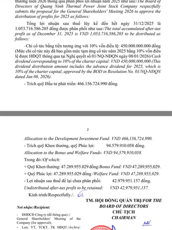 Hettien Quyết định bởi cổ đông lớn là EVN, mà EVN thì đang RẤT CẦN TIỀN