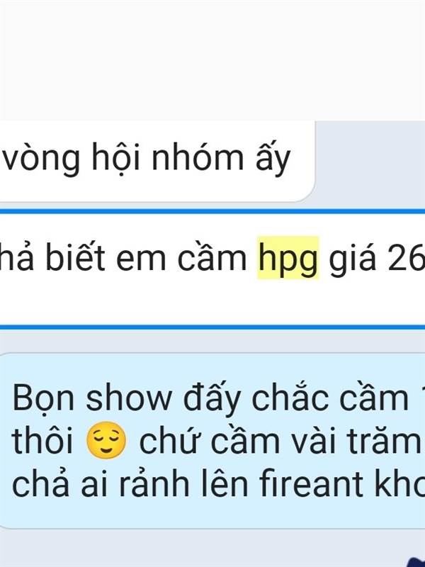 Team tôi có tôi cầm giá 22.5, con em cầm 26 đây. 280 từ HPG :). Khổ xanh tí là khoe. K thấy ngại à bác