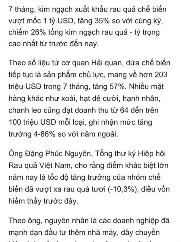 Phản hồi bài viết 7 tháng, kim ngạch xuất khẩu rau quả chế biến vượt...