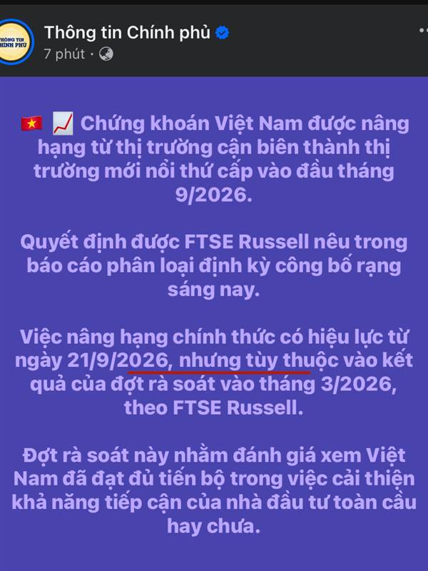 Báo nó dắt mũi đấy nếu đủ tiêu chí của nó thì nó nói tháng 3/2026 dc nâng hạng luôn đây vẫn đợi 1 kỳ đánh giá nữa mới chính thức vậy là hiểu dc hay trua thôi
