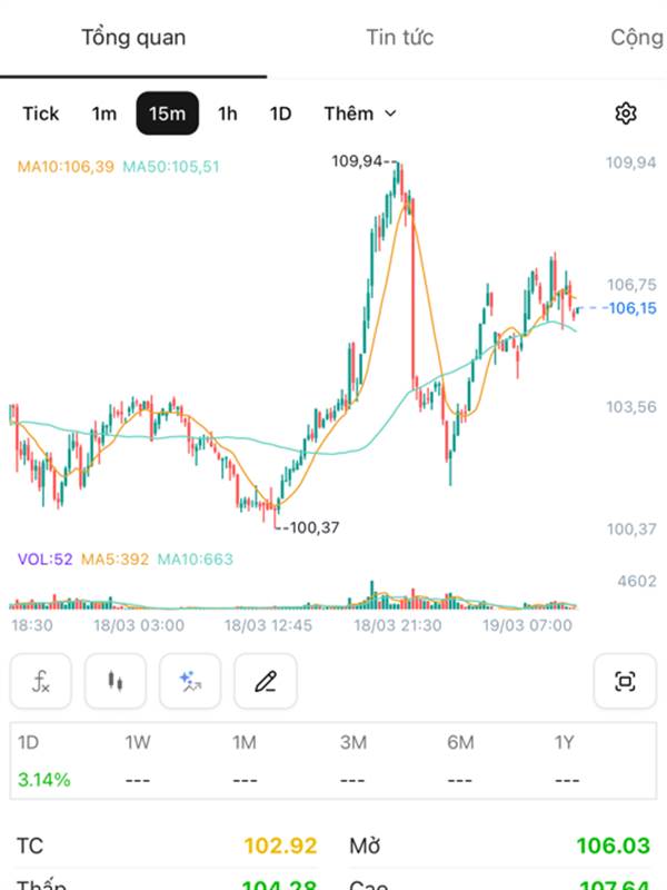 111.55 là giá hợp đồng tương lai tháng 5 mà, mấy bác coi sai còn chửi app