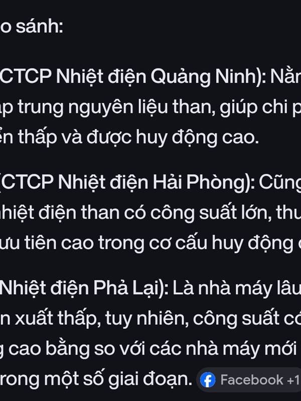 Lợi thế nguyên liệu vào ổn định cạnh tranh so với các công ty nhiệt điện phải nhập khẩu than