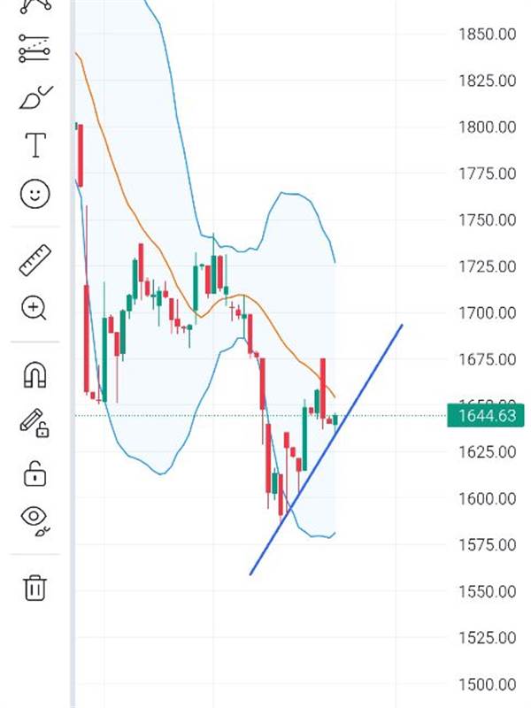 Chard 2h còn trên trent..và dải dưới boligaben đang kéo lên rồi..2 cây nến nua là nằm trên 1600 rồi..muốn đạp tầm t4 mới đủ lực