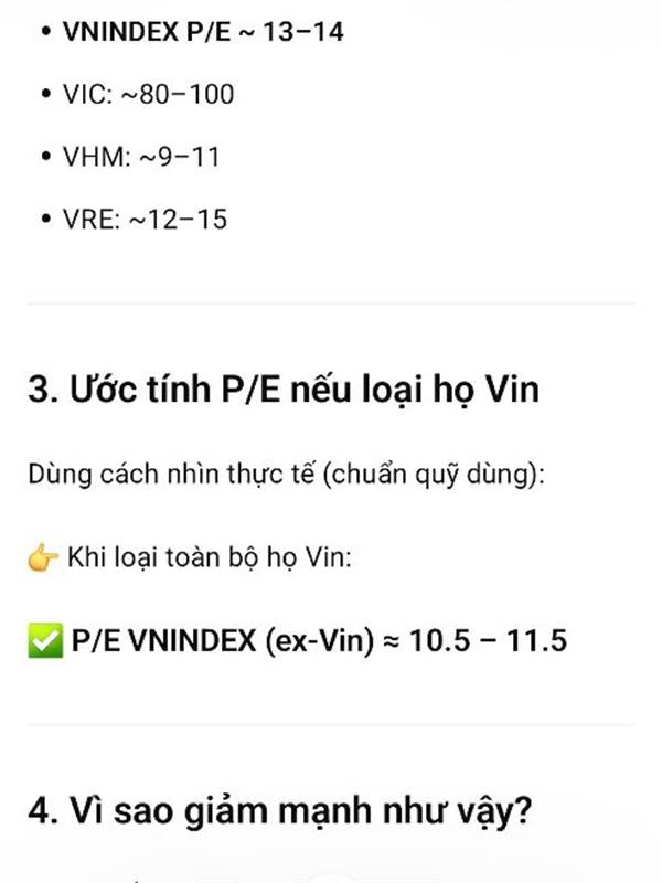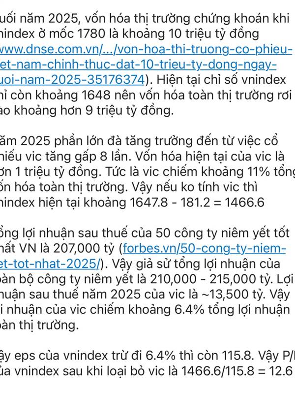 Trừ vic đi thì p/e thị trường là 12.6 nhé .. nói lung tung vcl