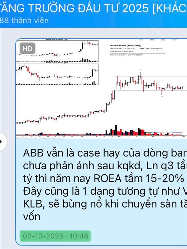 Gửi ace luận điểm về ABB khi mua đầu tư trong quý 4 và giai đoạn cuối năm nay mà Thảo đã khuyến nghị từ Group chuyên sâu !!!