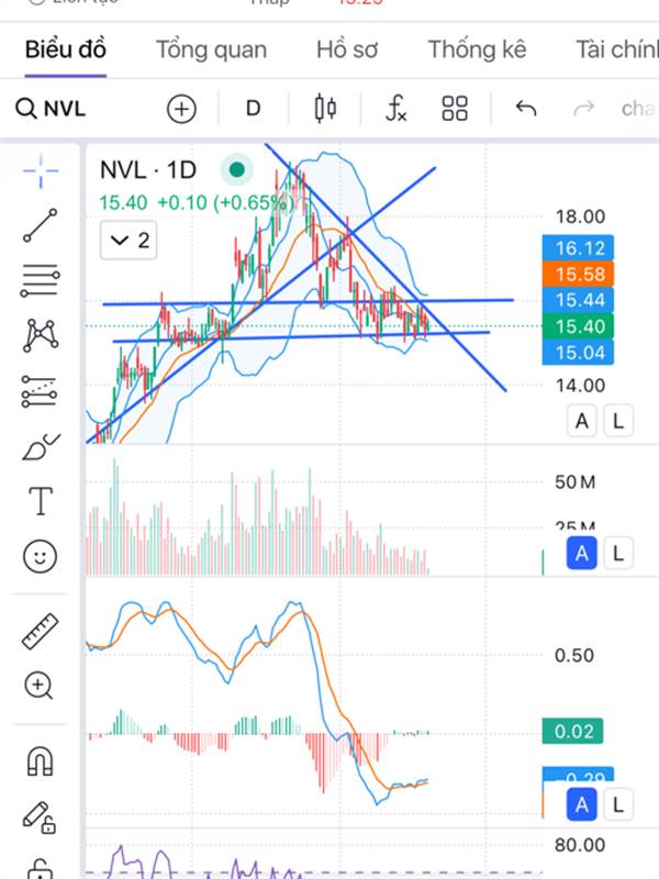 Mất nền 16, trend giảm, đứt trend tăng, vol giảm là điểm tốt nhưng do giữ nền 15 thôi, lái cho thủng 15 là vol lên trời