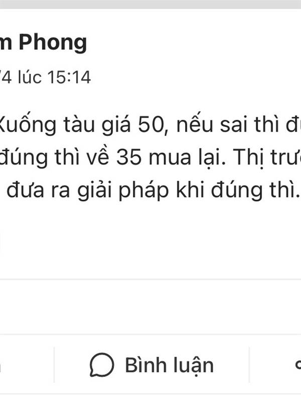 Newbie mày k biết đọc ah. t đã nói 1 là chấp nhận đu khi vượt 52, 2 là về 35 mua lại. mỗi việc đọc lại bài đăng mà mày k làm được thì còn được cái trò trống gì. thịt.