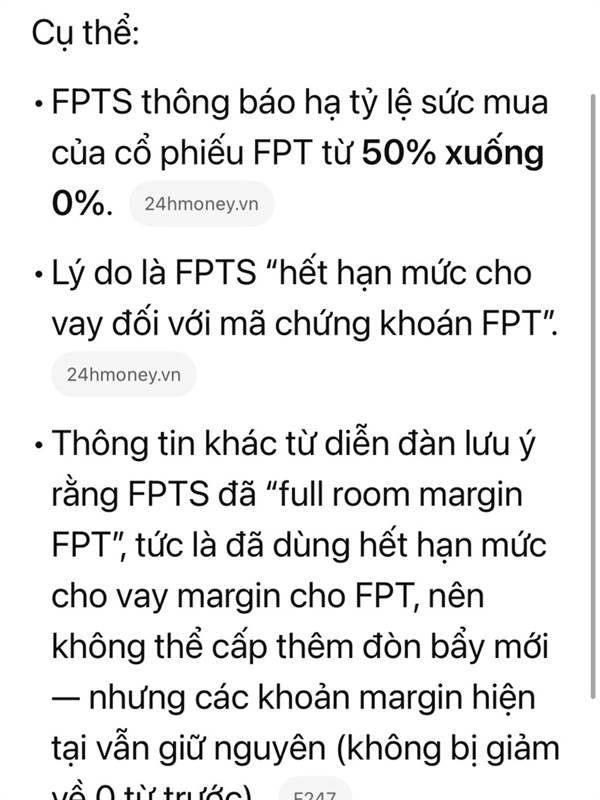 Phản hồi bài viết Có ai biết vì sao FTS cắt margin FPT từ 24/9 ko ?