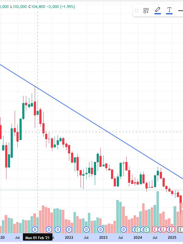 Vẽ 1 đường thẳng khẳng định thoát downtrend, dễ quá nhỉ, nên nhớ giá này chạm không biết bao nhiêu lần trong 8 năm