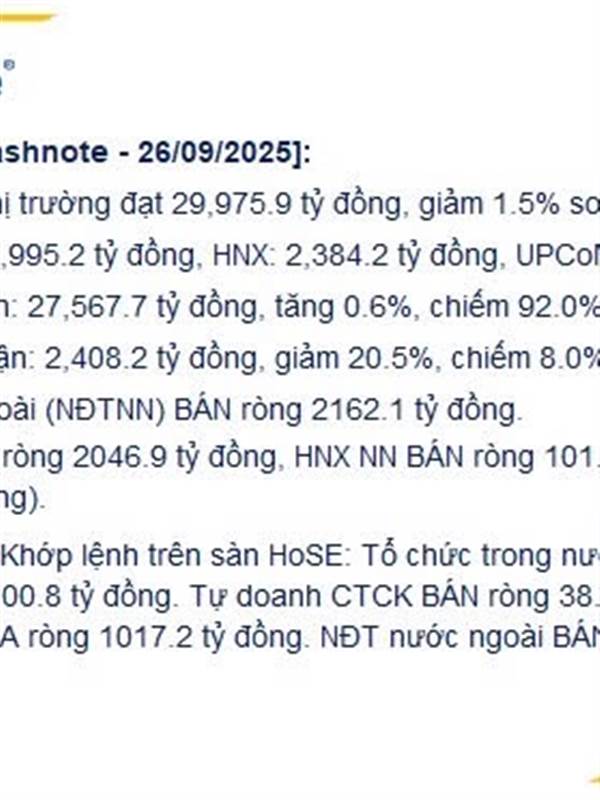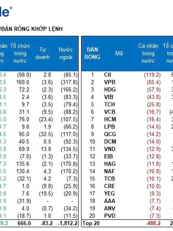 Riêng CP khớp lệnh : TỰ DOANH BÁN RÒNG : -76.8 tỷ đồng