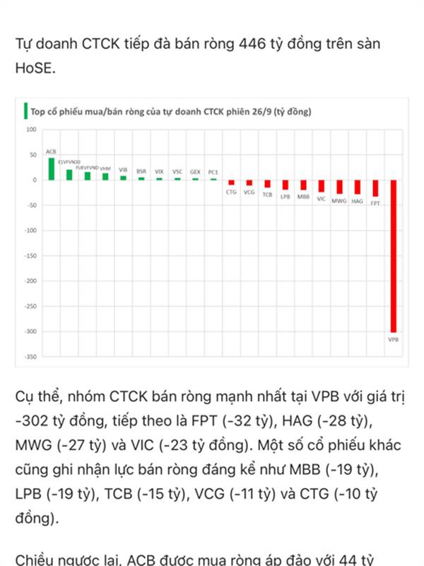 - Tự Doanh BÁN RÒNG : -418.3 tỷ đồng
