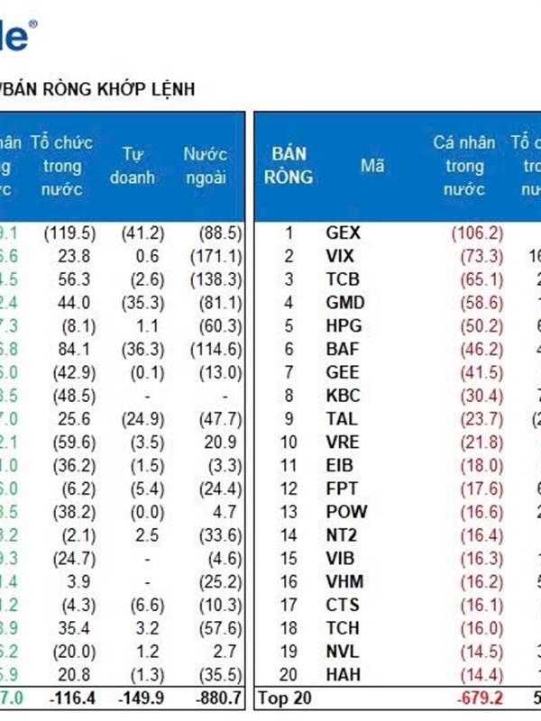 + Top MUA ròng : ACB, GEE, VRE