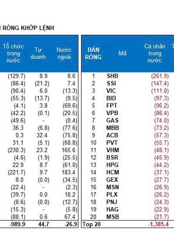 + Top BÁN ròng : MBB, SSI, CTG