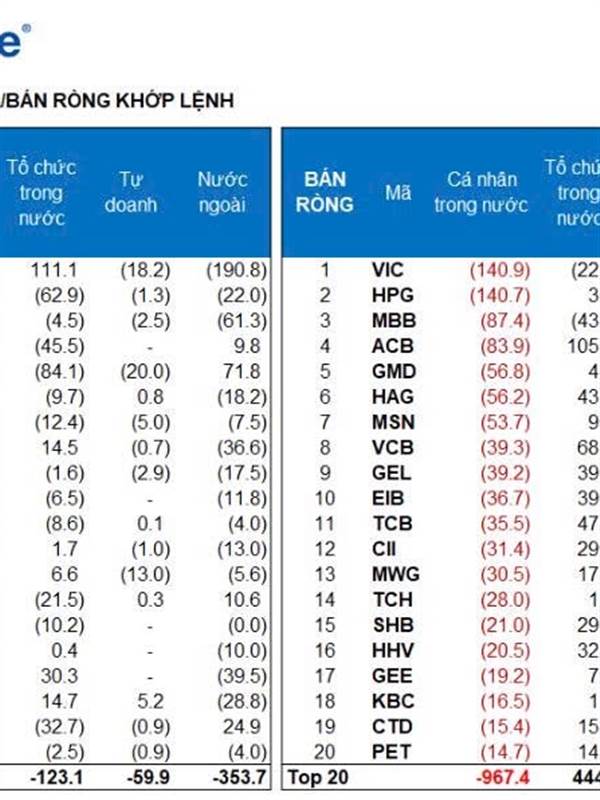 - Tự Doanh BÁN RÒNG : -50.1 tỷ đồng
