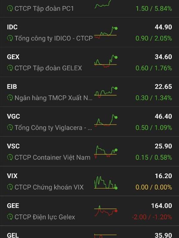 cả sàn hơn 200 mã đang đỏ, có hơn 100 mã xanh, mặt bằng chung là đa số hàng anh mượt giữ giá tốt. Đang xanh rất nhiều...