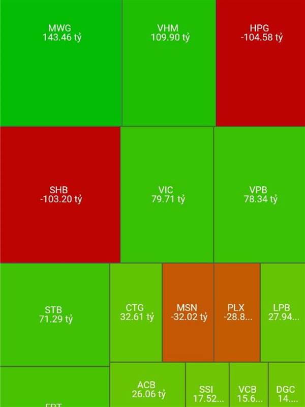 - Nâng hạng thành công, thị trường hưng phấn kéo vút lên vài chục điểm xong xả thẳng vào đầu nhỏ lẻ.