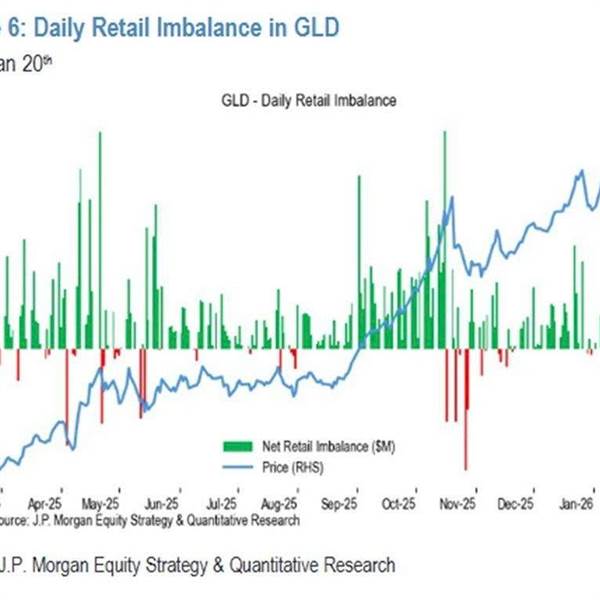 Theo The Kobeissi Letter, nhà đầu tư cá nhân đang ồ ạt đổ tiền vào ETF vàng và bạc, với GLD ghi nhận 95 triệu USD trong một ngày, mức cao nhất từ 10/2025.