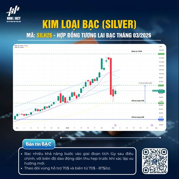 BẠC tiếp tục theo dõi nhịp phục hồi sau đợt giảm mạnh gần 30% từ vùng 121$ về quanh 70$