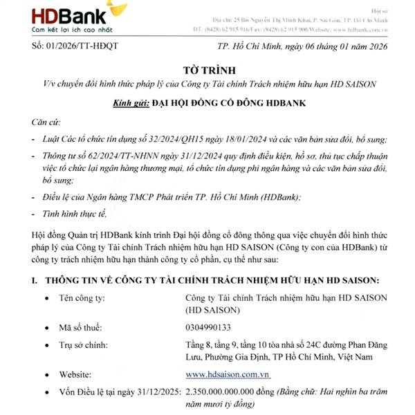 HDB chắc lại có game hay với công ty tài chính tiêu dùng. Đang bắt đầu chuyển đổi thành cty CP là bước 1 trước khi IPO hay niêm yết.