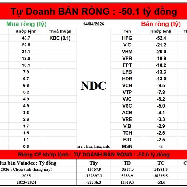 Năm Dòng Kẻ NDC: Kết phiên 14/4/2026 - Nhận định thị trường Chứng khoán hôm nay - NDC Chứng Khoán, Crypto, Vàng