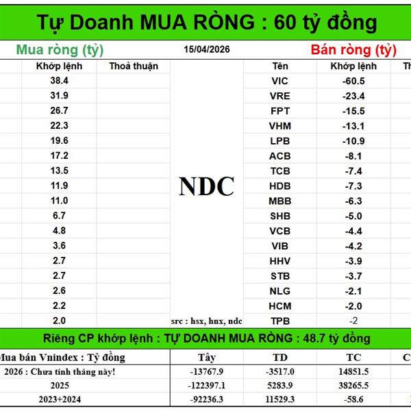 Năm Dòng Kẻ NDC: Kết phiên 15/4/2026 - Nhận định thị trường Chứng khoán hôm nay - NDC Chứng Khoán, Crypto, Vàng