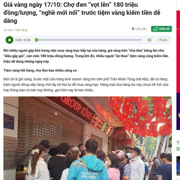 180 rùi! vỡ trận giá Vàng rùi! Nhiều tiền giờ có tranh nổi vàng không?