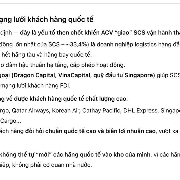 Đối thủ Của SCS ở tân sơn Nhất là CTCP Dịch vụ Hàng hóa Tân Sơn Nhất (TCS). Chủ sở hữu: TCS là công ty con của Tổng Công ty Hàng không Việt Nam - Công ty CP (Vietnam Airlines). Lĩnh vực hoạt động: Kha...Thêm