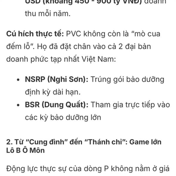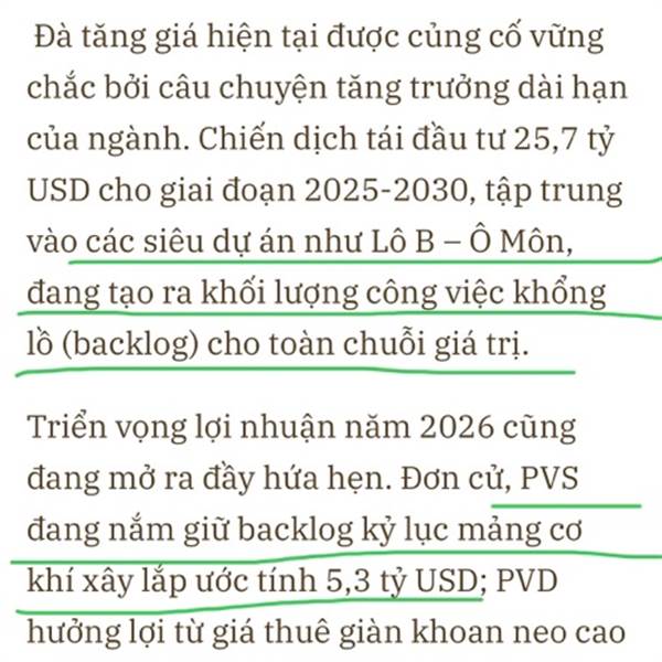 Đau lòng quá PVS là cổ phiếu dầu khí duy nhất chưa vượt đỉnh. Soi cơ bản doanh nghiệp thấy PVS tốt nhất ngành nên chọn nó mà nản thực sự. Backlog của PVS rất lớn lên tới 5.3 tỷ đô tính đến hiện tại và...Thêm