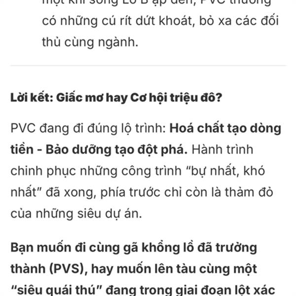 Bài phân tích hay về cổ phiếu PVC. Chúc mừng PVC đã có quyết định tăng vốn. Lịch sử mỗi khi có sóng dầu khí thì PVC và PVS thường tăng nhiều nhất. Đặc biệt mẹ PVN đã khẳng định PVC là DOANH NGHIỆP NÒN...Thêm