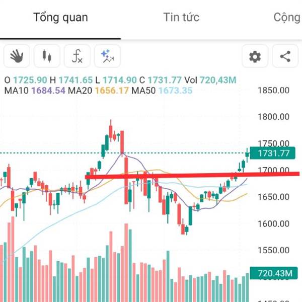 Vni đã đi từ vùng 1600 lên 1680-1700 như kỳ vọng, phiên nay thanh khoản chưa uy tín lắm nên tuần này, nếu vni giữ được 1680-1700, khả năng tuần sau thị trường tiếp tục tăng lên theo tín hiệu vượt mây,...Thêm