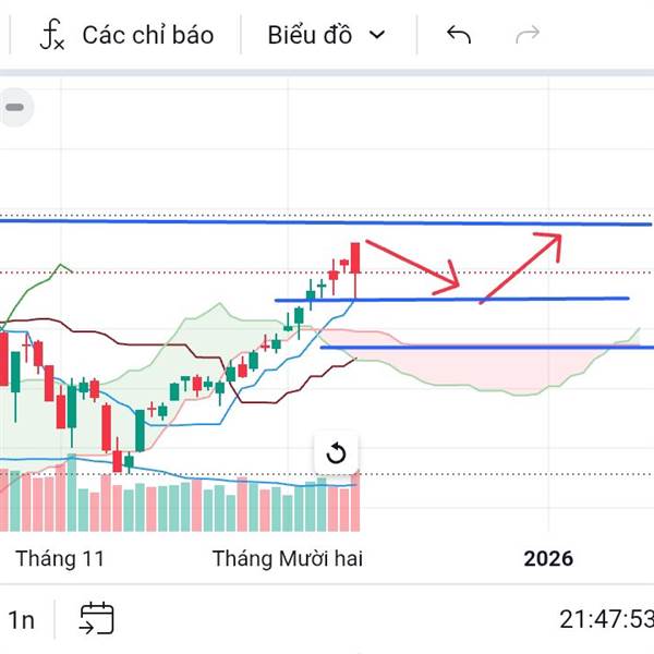 Tuần vừa rồi VN-Index đã tạo một nền hỗ trợ khá rõ quanh vùng 1605–1615, chính là đáy của Kumo hiện tại. Giá bật lên từ biên dưới mây cho thấy lực bán suy yếu và bên mua bắt đầu phản công nhẹ. Tenkan-...Thêm