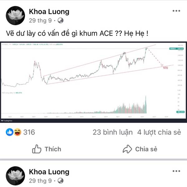 Cái thằng ml chim lợn này. Tôi ko biết thị trường lên 2000 hay sập nhưng mà nó vẽ về 970 là nó *** hiểu gì hết cái gọi là định giá thị trường rồi.