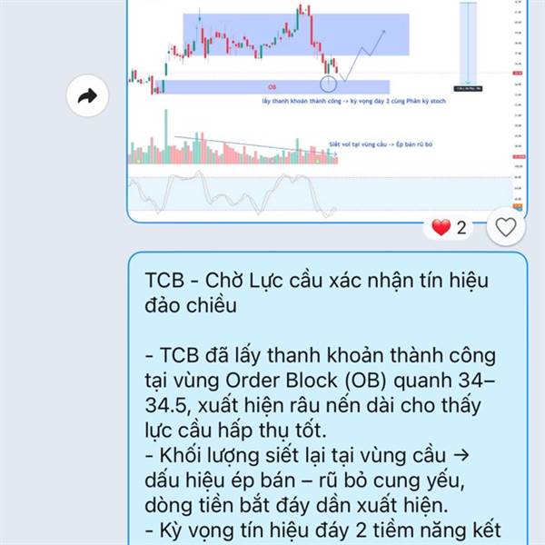 - TCB đã lấy thanh khoản thành công tại vùng Order Block (OB) quanh 34–34.5, xuất hiện râu nến dài cho thấy lực cầu hấp thụ tốt. - Khối lượng siết lại tại v...Thêm